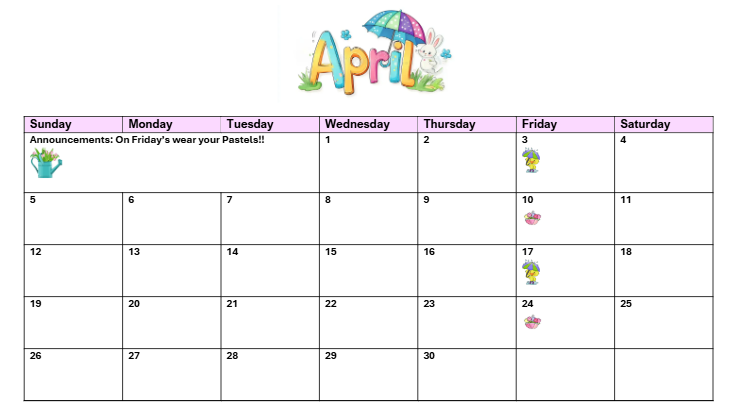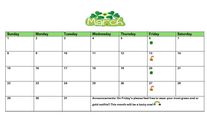 Beginning December 2025, our clinic will follow St. George’s Independent School in Collierville for weather closings. This calendar displays our holiday closures, spirit, and theme days!